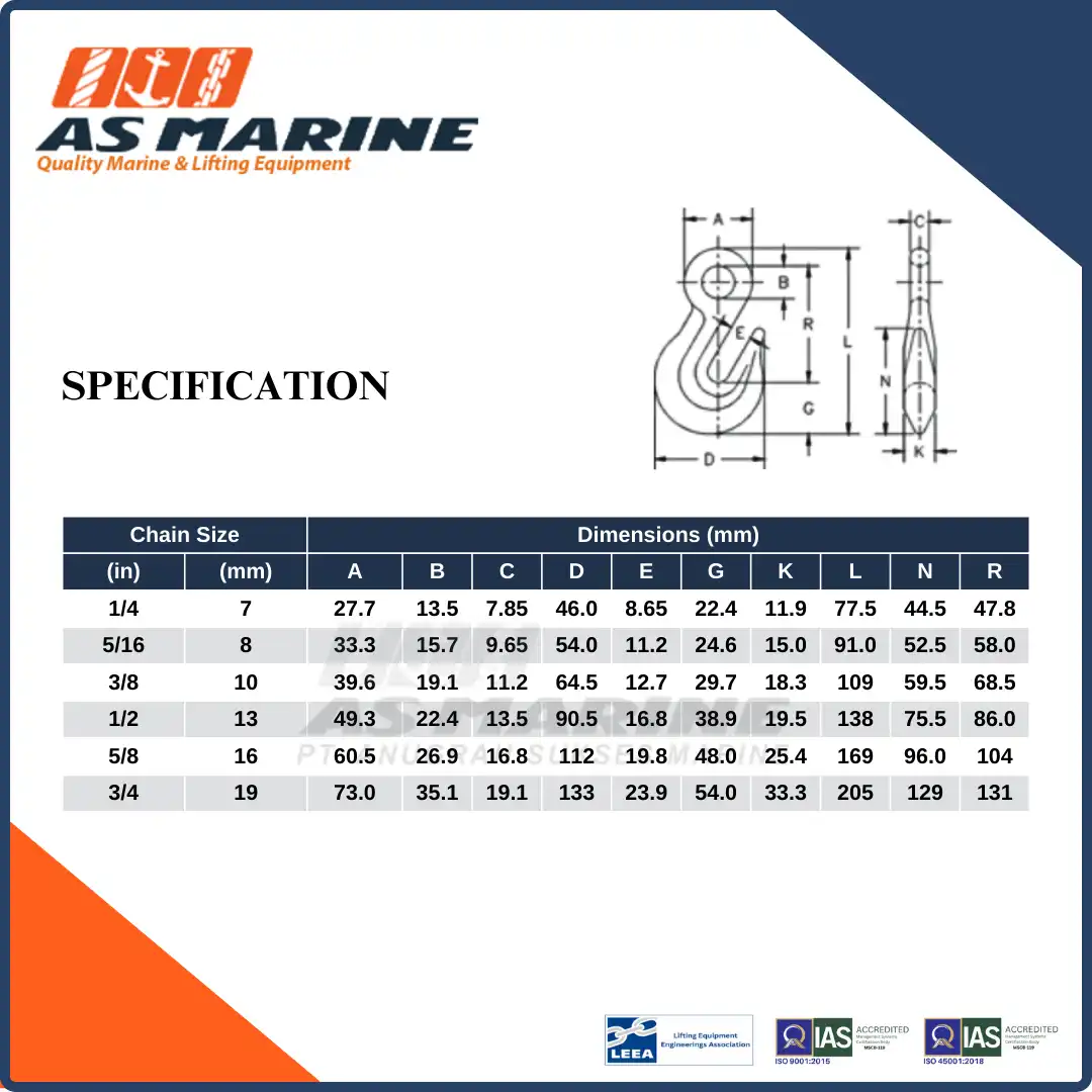 PT. Anugrah Sukses Marine adalah importir & distributor resmi CROSBY USA berstandar internasional & kami telah tersertifikasi ISO 9001:2015 & ISO 45001:2018. Kami jual Eye Grab Hook / Kait / Gancu A323 dan berikut spesifikasinya :
