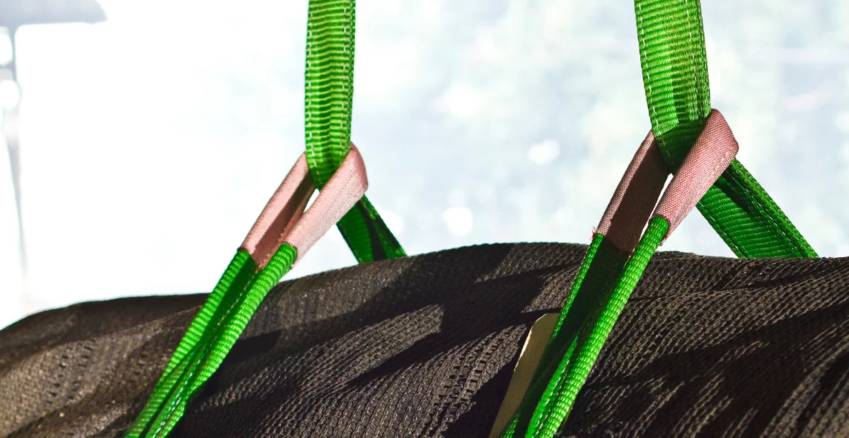 - Lifting Equipment untuk mengangkat barang. Pada aplikasi ini webbing banyak digunakan di bidang perkapalan, yaitu digunakan untuk mengangkat benda sebagai pengganti wire rope sling dan chain sling. Aplikasi lain yang menggunakan webbing sebagai alat lifting yaitu pada bidang konstruksi, yaitu digunakan untuk mengangkat beban untuk kebutuhan konstruksi bangunan rumah, gedung bertingkat, jembatan dan lain-lain. Webbing sling digunakan pada aplikasi ini.