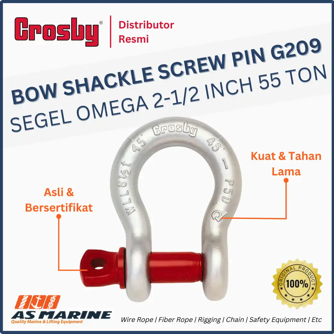 PT. Anugrah Sukses Marine adalah importir & distributor resmi CROSBY USA berstandar internasional & kami telah tersertifikasi ISO 9001:2015 & ISO 45001:2018. Kami jual CROSBY USA Bow Shackle / Segel Omega G209 Screw PIN dan berikut spesifikasinya :