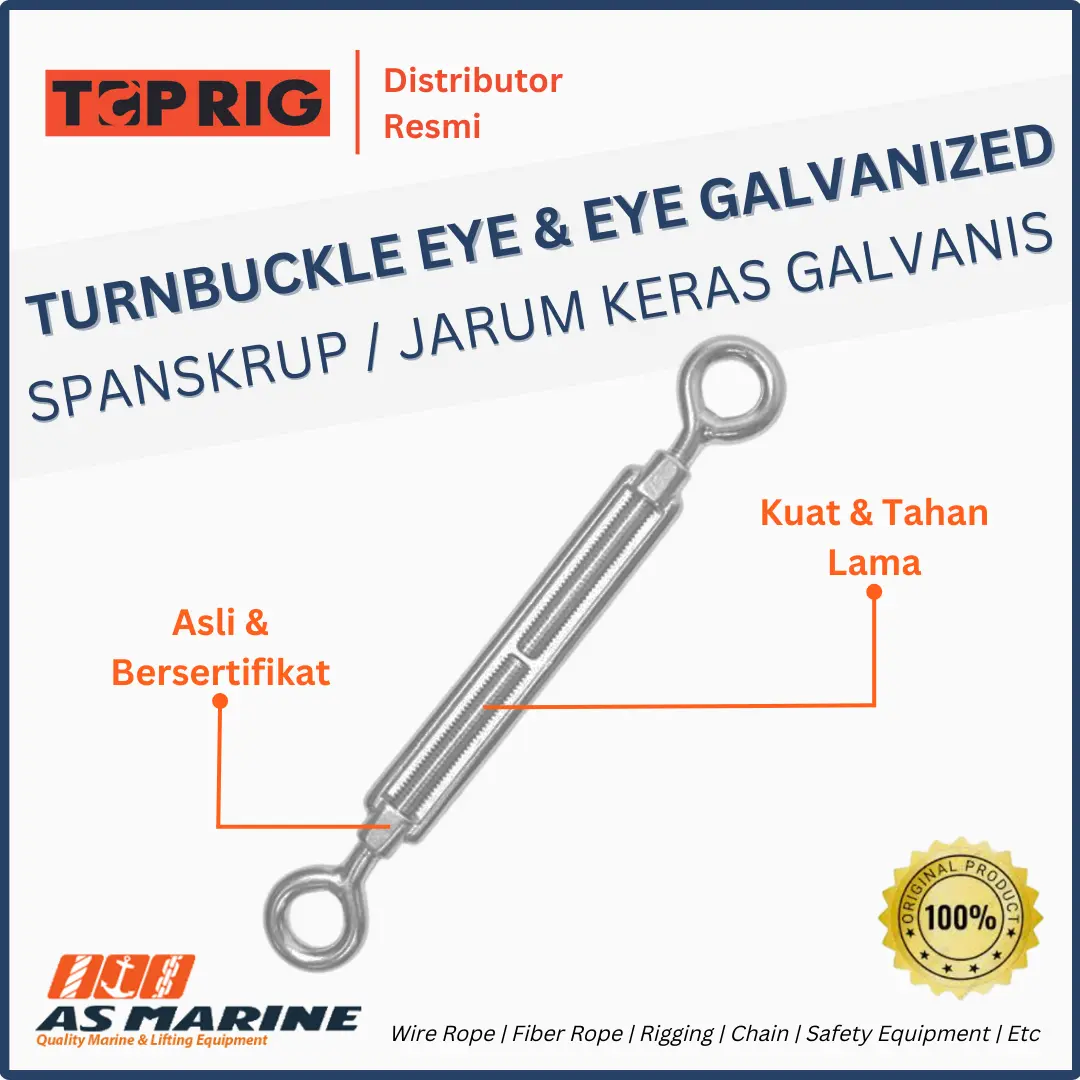 Turnbuckle merek Toprig yang kami jual disertakan sertifikat yang menandakan produk sudah lulus uji sertifikasi dan aman untuk digunakan di berbagai kebutuhan. Silahkan klik & pilih ukuran turnbuckle / spanskrup / jarum keras yang sesuai dengan kebutuhan.