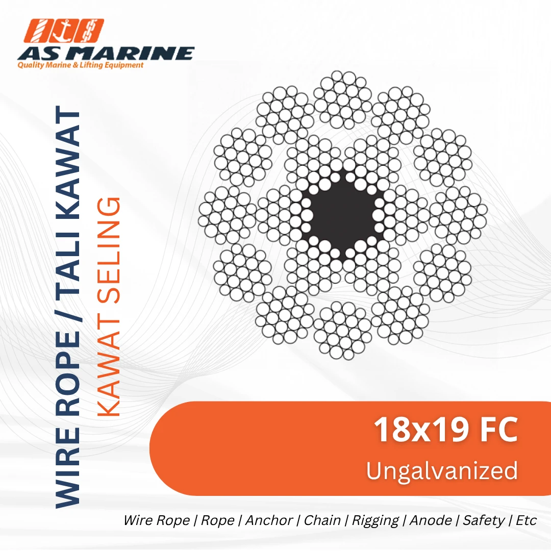 PT. Anugrah Sukses Marine adalah importir & distributor resmi berstandar internasional & kami telah tersertifikasi ISO 9001:2015 & ISO 45001:2018. Kami jual Wire Rope 18x19+FC Ungalvanized dan berikut spesifikasinya :