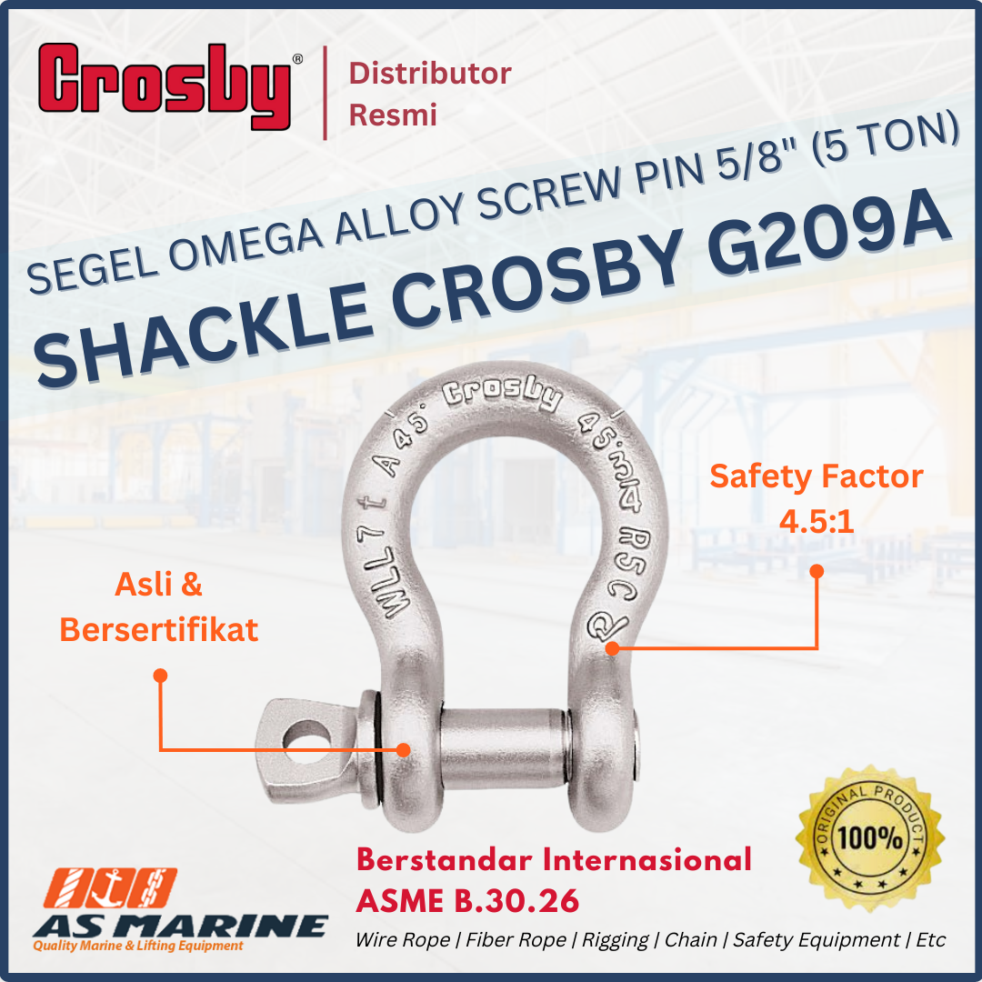 PT. Anugrah Sukses Marine adalah importir & distributor resmi CROSBY USA berstandar internasional & kami telah tersertifikasi ISO 9001:2015 & ISO 45001:2018. Kami jual CROSBY USA Bow Shackle / Segel Omega G209A Alloy Screw PIN dan berikut spesifikasinya :