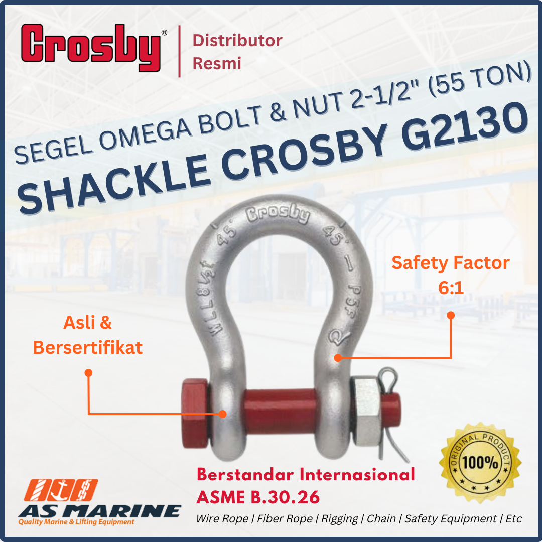 PT. Anugrah Sukses Marine adalah importir & distributor resmi CROSBY USA berstandar internasional & kami telah tersertifikasi ISO 9001:2015 & ISO 45001:2018. Kami jual CROSBY USA Bow Shackle / Segel Omega G2130 Bolt & Nut dan berikut spesifikasinya :